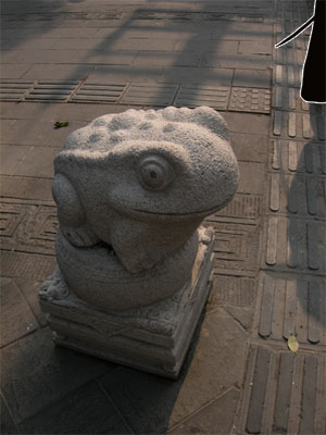 文殊坊路边的小青蛙石墩。萌…………