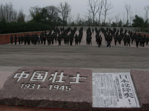馆区内的中国壮士群雕。抗战时期国共全部将领齐聚一堂,相当有气势的群雕。发现国母,合影之。不过不知道为什么周恩来像的位置是空的…………