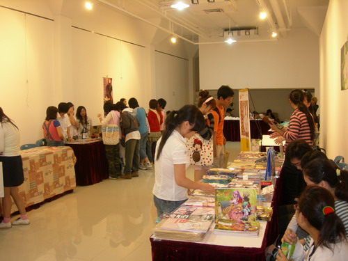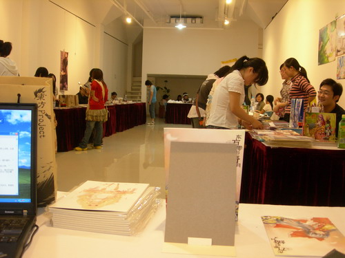与周边区一墙之隔的就是同人志贩卖区。左边腐右边宅,我们的摊位刚好居于两者中间的通道尽头……